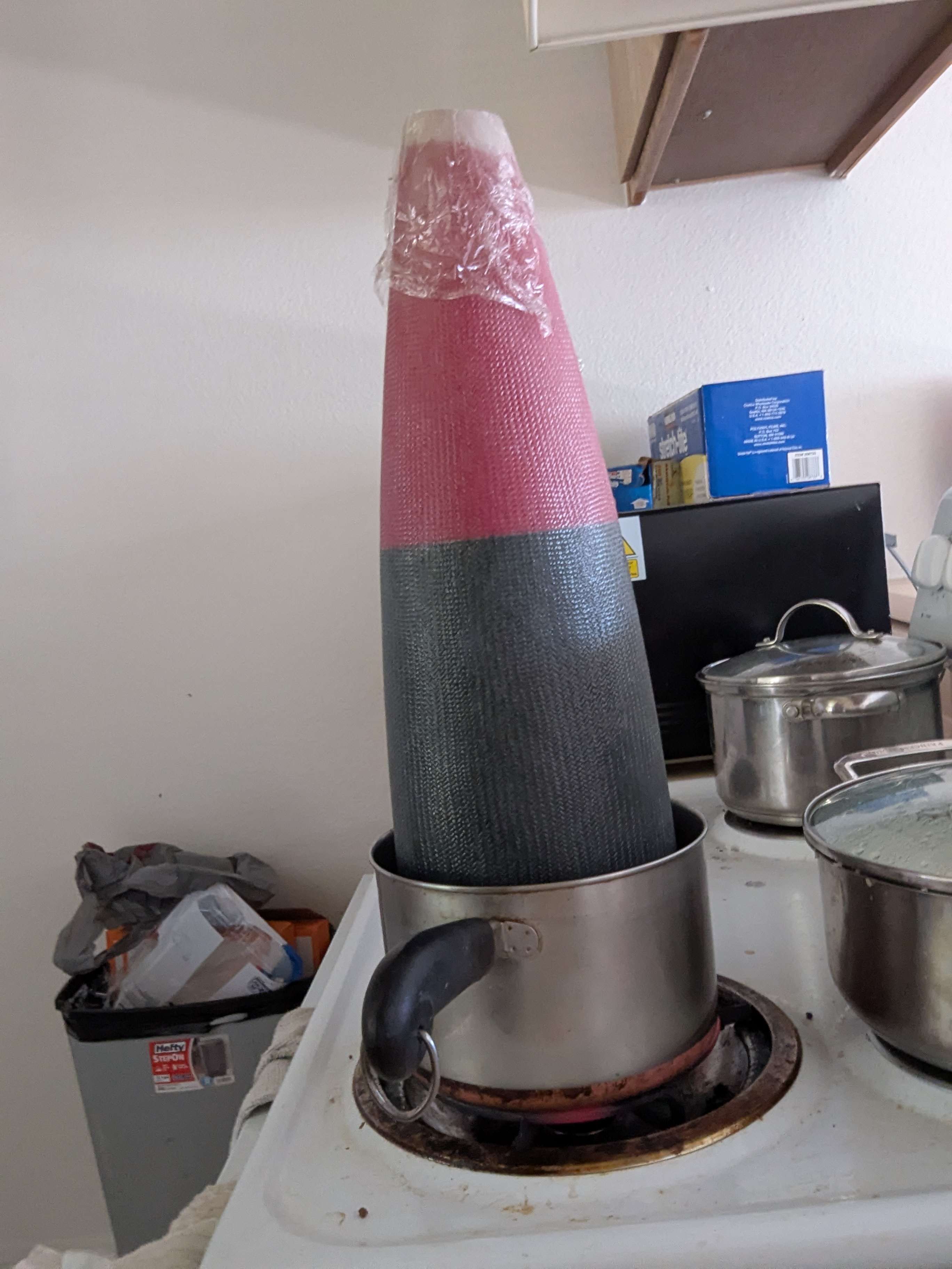 Boiling hand-layup nosecone to soften 3D printed mandrel
